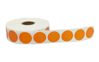 Decal tròn màu cam phi 25mm dạng cuộn 50m chứa khoảng 1.700 tem